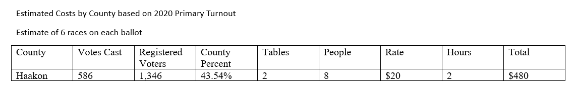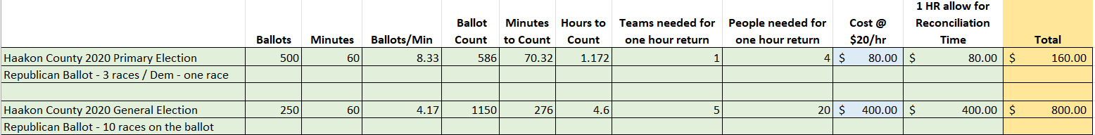 Here is what we come up with for an accurate estimate of hand counting costs in Haakon County: