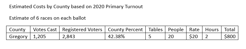 Again, the above is a very conservative estimate as Gregory County has three races on the Republican ballot and one race on the Democratic ballot.