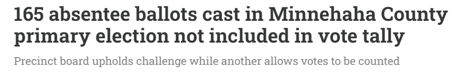 During the Minnehaha County Commission Meeting, the commissioners asked what guarantees there were that a challenge like this wasn’t going to be presented or entertained during the November election. Instead of asking how to prevent your legitimate constituents from using legal means to ensure fair elections, why don’t the elected (?) officials start asking how they are going to fix this mess and start ensuring the laws are followed in the first place? How are they going to correct the thousands of improperly processed voter registrations that were approved in clear violation of Federal and State law?