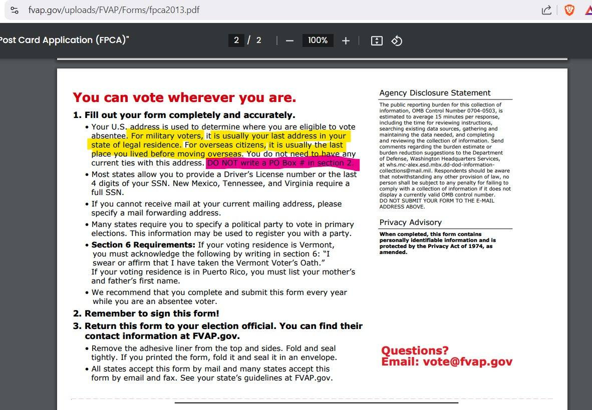 Federal Voting Assistance Program Instructions: (UOCAVA)