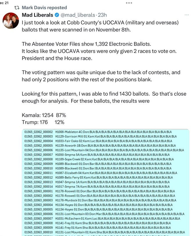 We were made aware of, and consulted on, a 2024 General Election recount in Montana. The unusual results of UOCAVA ballots yielding returns 90% in favor of democrats popped up there too. Election judges completed signed, notarized affidavits. Read the screenshots below.