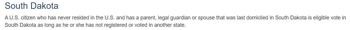 Great explanations about UOCAVA and the mail-forwarding companies in South Dakota.