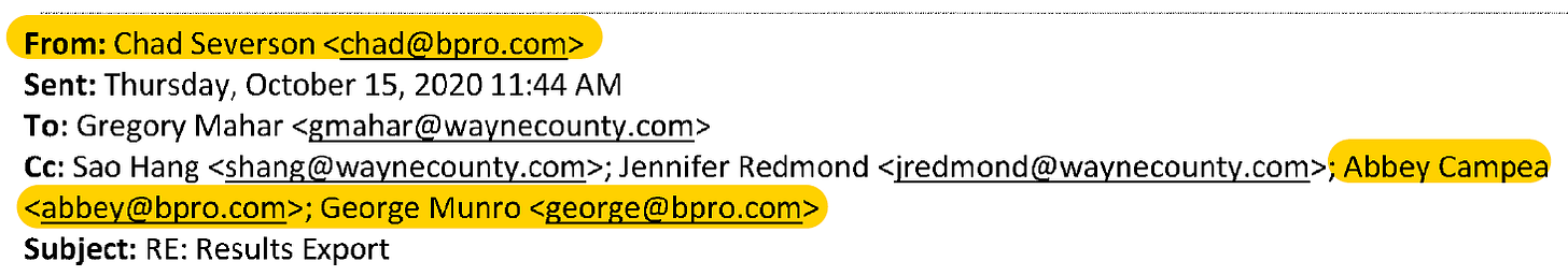 We wonder why Atty Stephanie Lambert felt these emails from BPro were important to include in her legal evidence? We are sure time will tell. In the meantime, how do we feel about the 2024 election voter rolls, ABSENTEE BALLOTS, and election reporting being fully controlled by Bpro Total Vote? Don’t worry, nothing to see here.