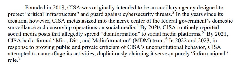 The above is a screenshot from the investigation by the U.S. House of Representatives on the weaponization of CISA. (You can click the underlined words to read the report yourself. We strongly suggest that you do.) They have perfected their Marxist messaging on “Mis, Dis, and Mal Information”. Any information contrary to the official narrative of “the safest and most secure election in history” was deemed so dangerous that CISA colluded with big tech to sensor the American people. Were you ever de-platformed? Sent to Fakebook jail? Lost your Twitter account? Had videos taken off YouTube? This is the agency that facilitated the censorship. This is the same agency that is brainwashing your election officials and county commissioners on a regular basis. They are the enemy of free speech, free, fair, transparent and secure elections, and a free society.