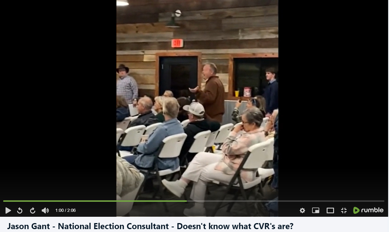 Last week we were invited to give our presentation in Charles Mix County, home of the former SD SOS and current Charles Mix County Auditor, Jason Gant. We included pertinent information to that county along with video recordings of Gant saying he has no idea what cast vote records are or how to get them off his machine. The first thing he did was stand up and say that our presentation was full of “disinformation”. (this is the DHS/CISA/CIS/NASS approved messaging spewed by properly indoctrinated puppets) He also said “We don’t do anything with whatever those are” and about got laughed out of the room. See video below:
