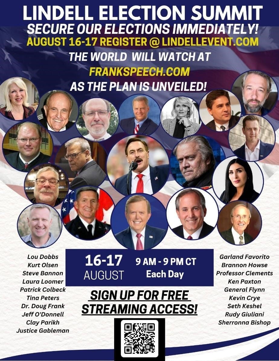 Mike Lindell is set to release “The Plan” to save our elections. We don’t know what the plan is, but we know this event is going to be great! The line-up of speakers is exceptional. You don’t want to miss it.