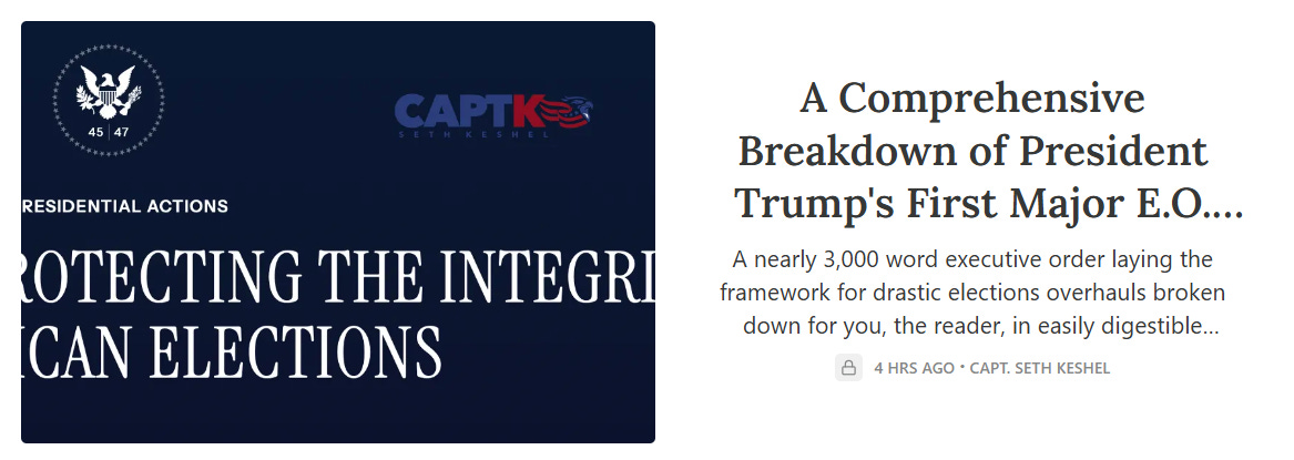Trump closes the section by affirming that voters deserve elections that are “honest and worthy of the public trust,” and that he intends to lead us toward a system with a voter-verifiable paper record. I believe Section 1 is a great way to start the order off and justify what follows.
